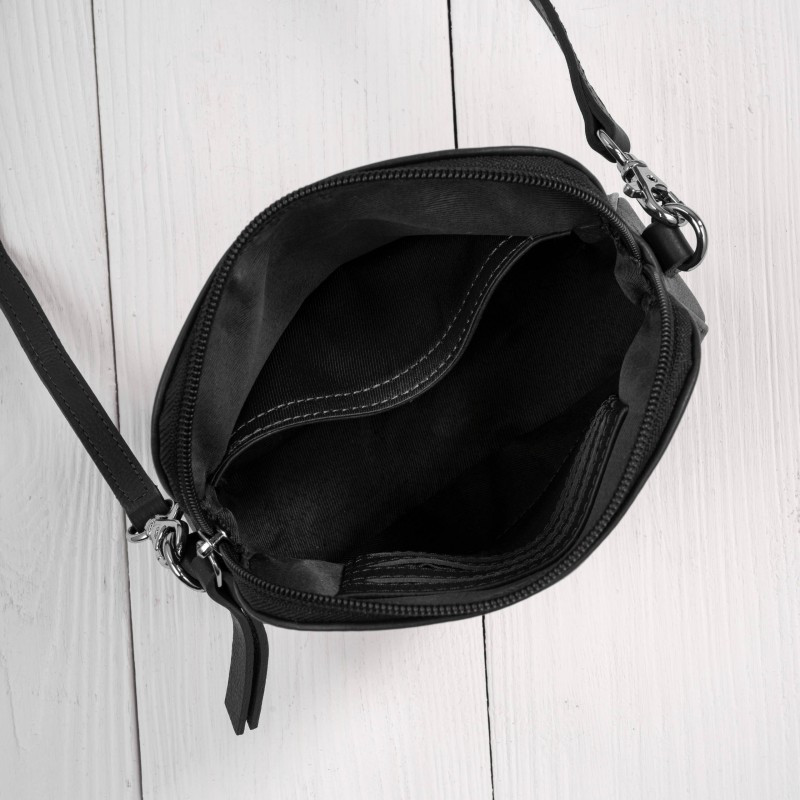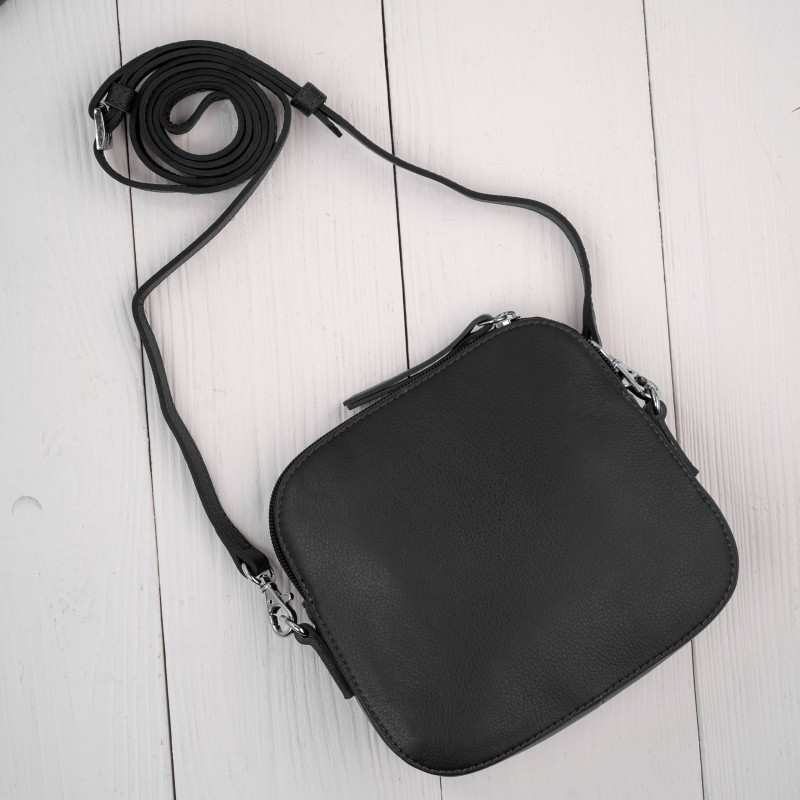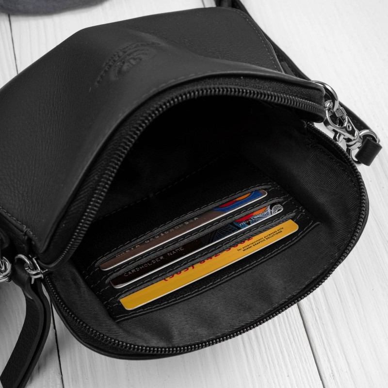 Malý dámský crossbag z pravé kůže v elegantním černém odstínu představuje ideální spojení nadčasového designu, kompaktní velikosti a vysoké funkčnosti.