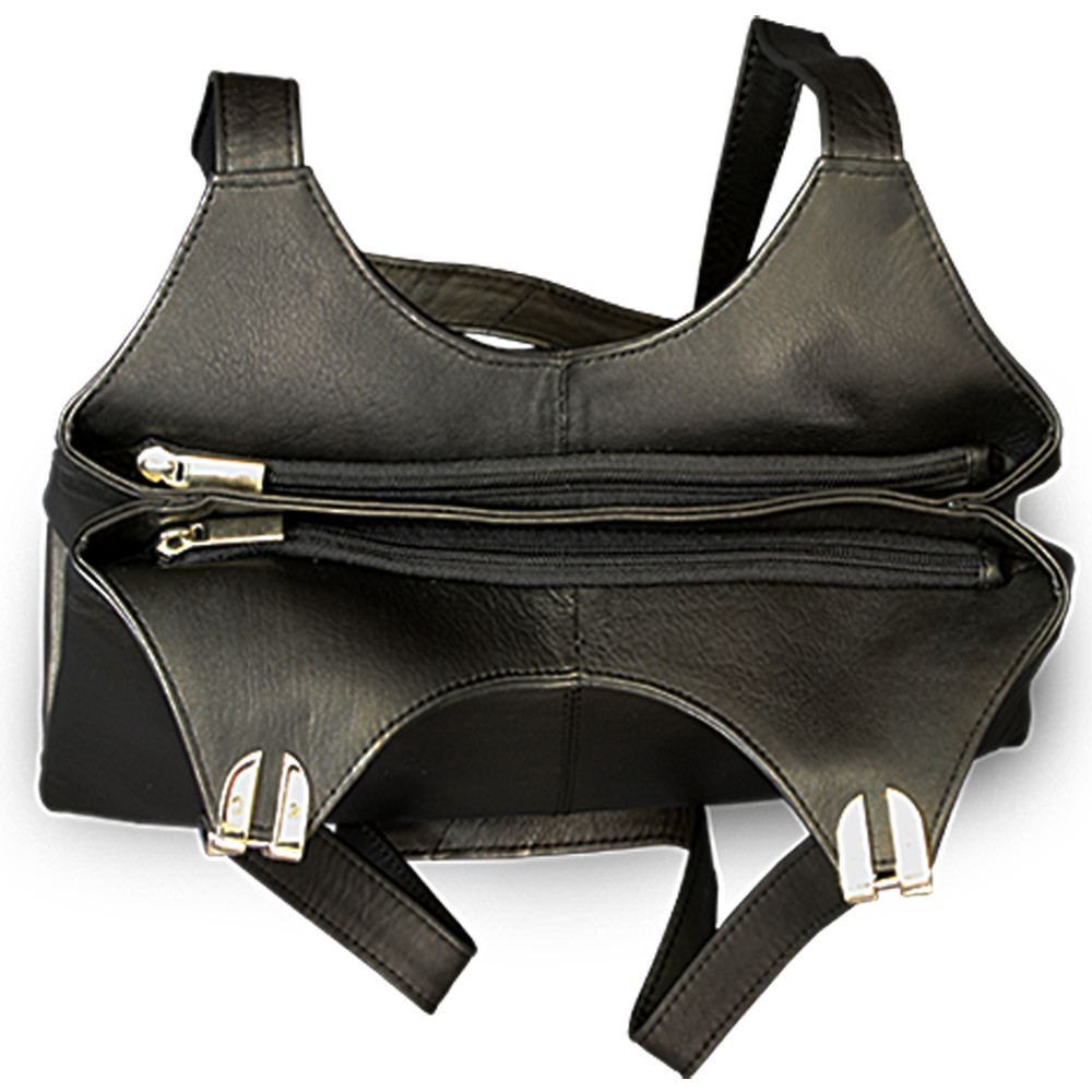 Kabelka má dvoukomorové uspořádání s uzavíráním na zip, které zajišťuje bezpečné a přehledné uložení všech nezbytností. V jedné komoře se nachází zipová kapsička, v druhé pak otevřená kapsa na mobilní telefon. Součástí vybavení je také malé zrcátko v koženém obalu a praktická skládací textilní nákupní taška, která se snadno vejde dovnitř.