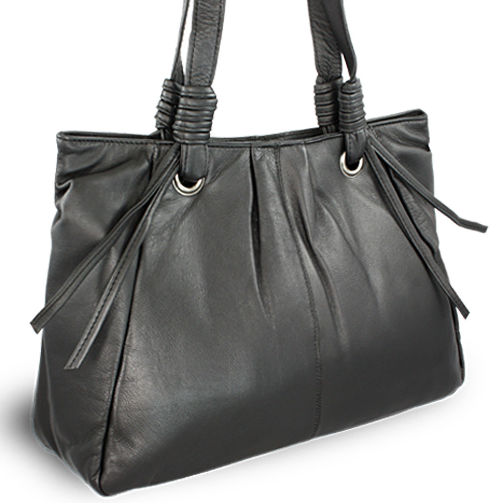 Součástí výbavy je také odepínatelný kroužek na klíče, který usnadňuje jejich rychlé nalezení, a malé zrcátko v elegantním koženém pouzdře, jež podtrhuje luxusní charakter kabelky. Pevná ucha s výškou popruhu 30 cm zajišťují pohodlné nošení přes rameno.