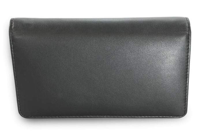 Klasická černá etue s jednou separací obsahuje 6 kapes pro kreditní karty, 1 klopnovou a 4 vnitřní kapsy. Na zadní straně je zipová kapsa. Součástí etue je odepínatelný kroužek na klíče a poutko na zápěstí.