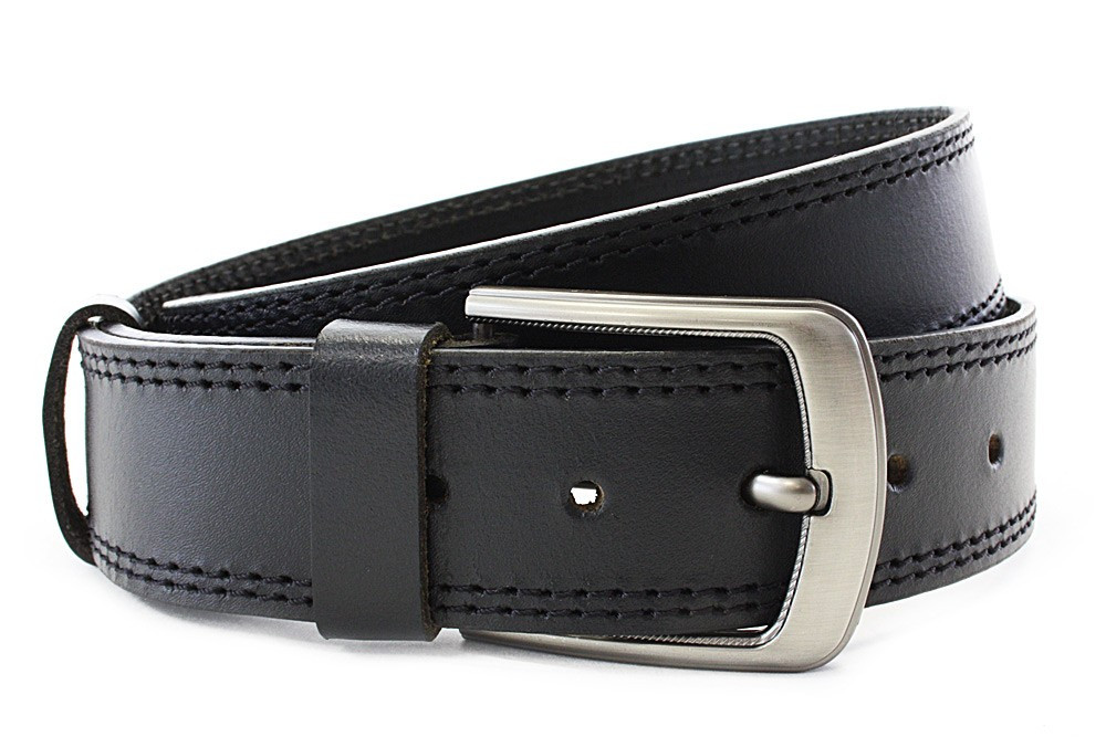 Tento kožený pánský opasek je určený k nošení do džínových, plátěných nebo jiných volnočasových kalhot. Svým designem a šíří odpovídá současným trendům a požadavkům. Opasek má masivní kovovou sponu a řemen je vyrobený z jednoho kusu pravé hovězí kůže. Barva pásku by měla být sladěná s barvou oblečení nebo obuvi.
