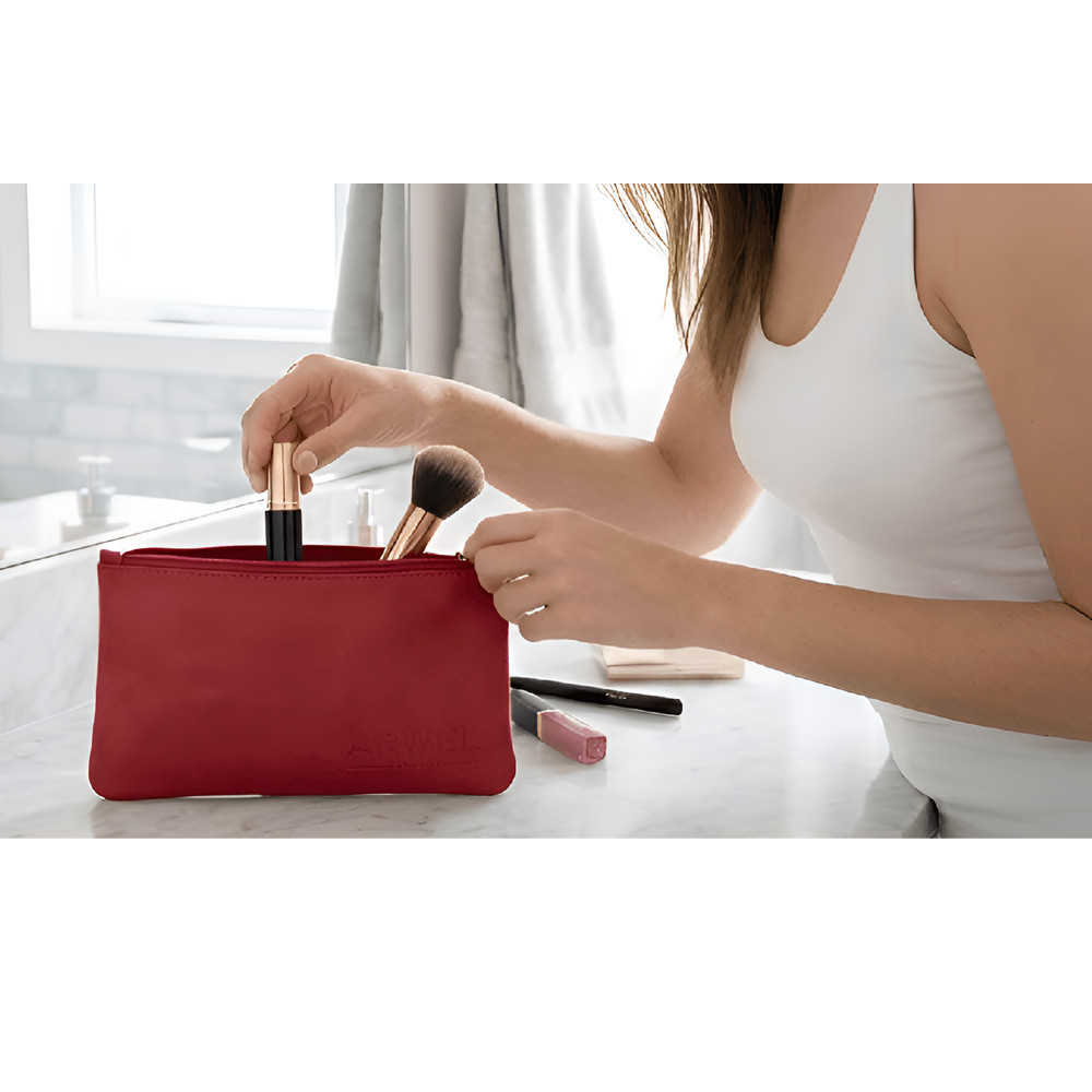 Elegantní dámská kosmetická etue české značky Arwel ze červené pravé hovězí kůže je ideální pro uložení drobné kosmetiky i nezbytností do kabelky.