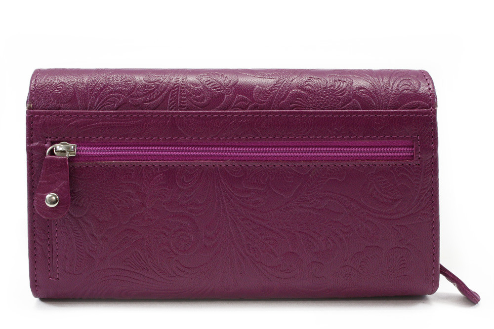 Fuchsiová klopnová kožená dámská peněženka se vzorem Ourania