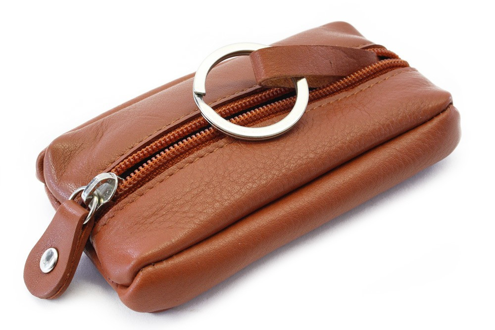 Hnědá kožená klíčenka se zipovou kapsou Lana
