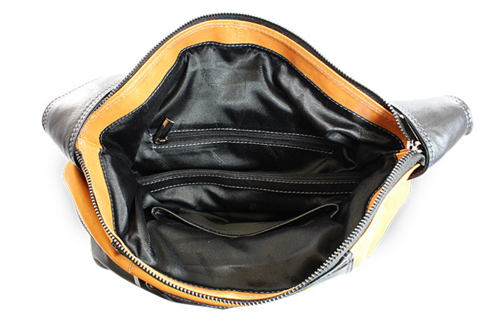 Dámská moderní kabelka je vyrobena z jemné kůže a má hlavní prostor krytý zipem. Uvnitř se nachází zipová přepážka, malá zipová kapsička a kapsa na mobil. Na vnější zadní straně je umístěná zipová kapsa. Na bocích jsou malé funkční kapsy. Popruh přes rameno je pevný, nastavitelný do cca 80 cm. Součástí kabelky je malé zrcátko v koženém obalu.