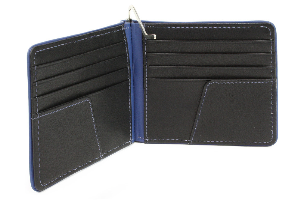 Moderní pánská kožená peněženka - dolarka obsahuje pružinu pro uchycení bankovek a 12 kapes na kreditní karty.