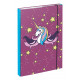 Pevné ochranné desky na úschovu školních sešitů a dokumentů s atraktivním designem mají zapínání řešené klopnou a jištěné gumičkou.