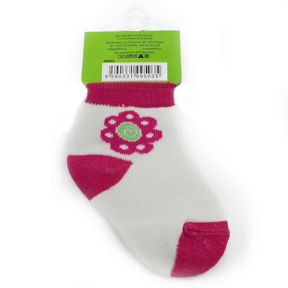 Kojenecké barevné ponožky mají pohodlný volný lem a plochý šev na špici.