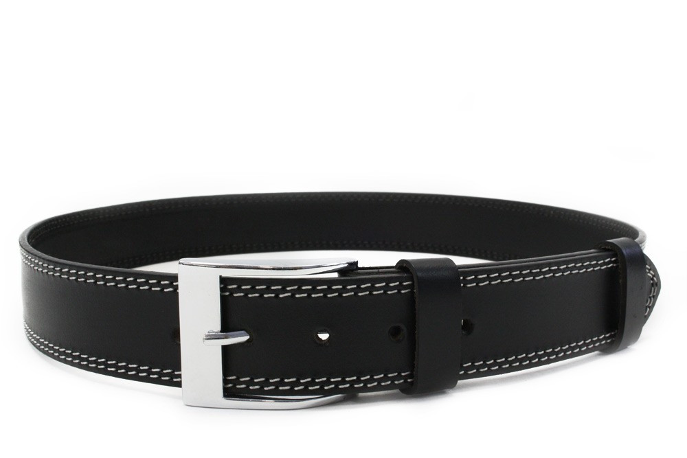 Šedočerný kožený pánský opasek s dvojitým šitím Miklós