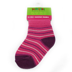Kojenecké barevné ponožky mají pohodlný volný lem a plochý šev na špici.
