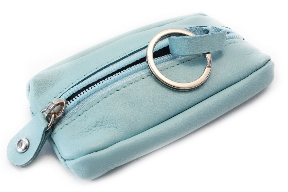 Světle modrá kožená klíčenka se zipovou kapsou Lana