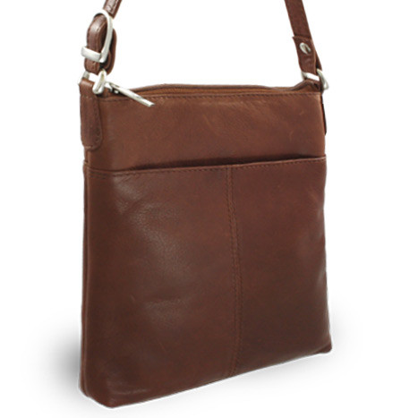 Tmavě hnědá dámská kožená zipová crossbody kabelka Jenny