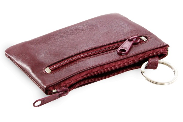 Vínová kožená dvouzipová klíčenka Rita