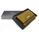 Podlouhlá, bohatě vybavená, kožená klopnová peněženka nabízí 2 přihrádky na bankovky, jeden velký dělený zipový mincovník, 12 přihrádek na kreditní karty, vizitky či doklady, tři průhledné okna na vkládání fotek a pět otevřených vnitřních kapes. Na zadní straně je zipová kapsa. Peněženka má zapínání na klopnu s ozdobným kováním jištěnou drukem. Šití je v barvě kůže.